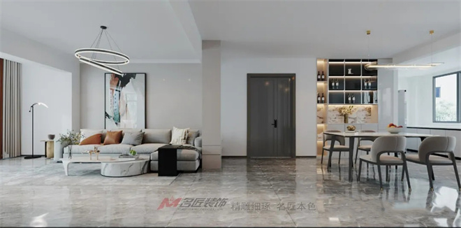 空間布局上,從客廳、餐廳到書房以功能性為主,并滿足每個成員的需求,以不同的調(diào)性,賦予生活舒適感